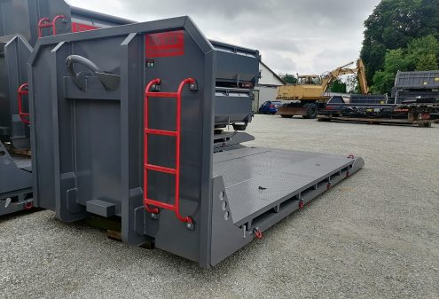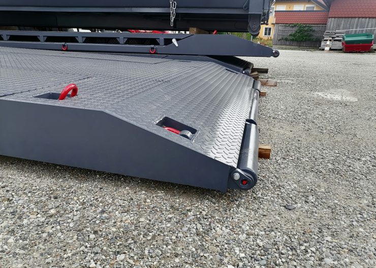 Eine Decker Transportplattform mit Einlegeelementen bietet Ihnen den Vorteil von Maschinentransporten mit einer 160 mm geringeren Transporthöhe.